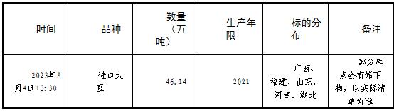受中储粮油脂有限公司委托,2023年8月4日13:30在国家粮食和物资储备局粮食交易协调中心及联网的各省(区、市)湖北粮网组织开展进口大豆竞价交易,请交易会员通过湖北粮网官网()“用户中心”,登录国家粮食交易平台,在专场列表中选择“政策性粮食轮换交易”参与交易。现就有关事项公告如下(重点提示内容详见加粗字体部分):