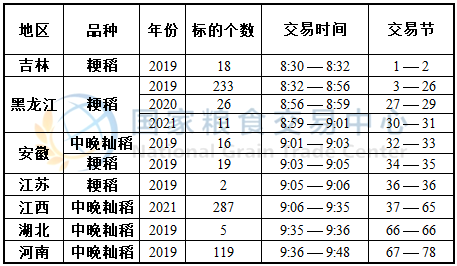 最低收购价稻谷于8:30开市交易,请提前登录“国家政策性粮油竞价销售”交易专场并关注标的,最新预估竞价交易时间如下: