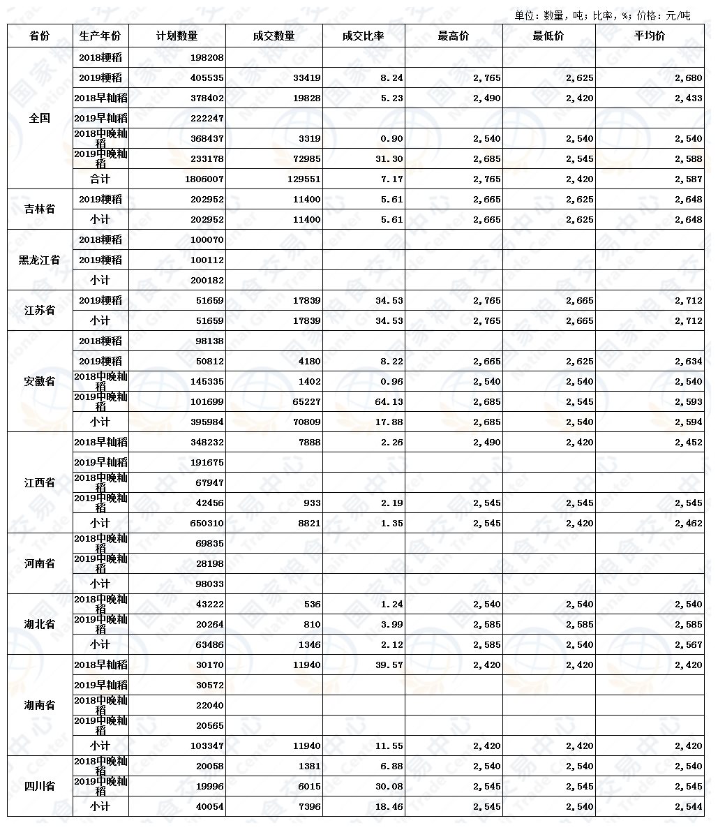 9月25日最低收购价稻谷(2018-2019年)交易结果